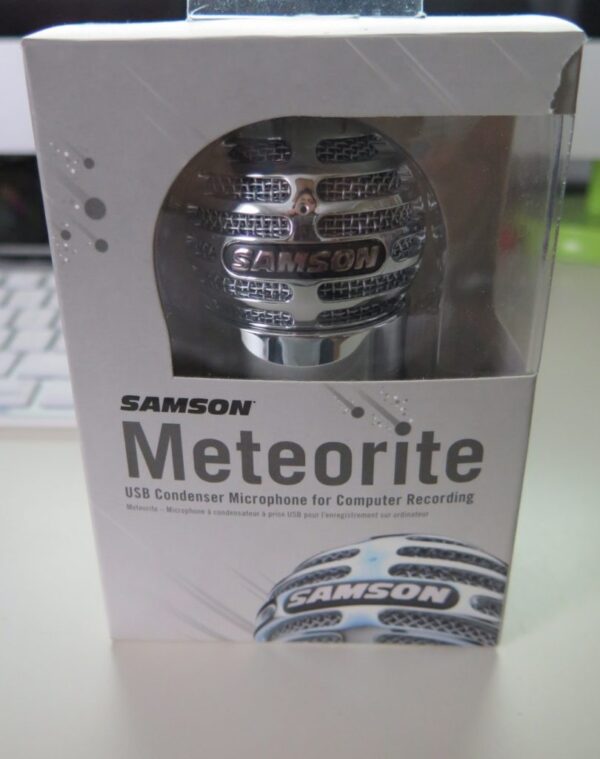 El Meteorito de Samson es un micrófono condensador USB que cuenta con un diafragma de 14 mm, una respuesta de frecuencia plana y una resolución de 16 bits y 44.1 / 48 kHz. Este compacto micrófono de escritorio le brinda audio de sonido profesional en un diseño portátil.